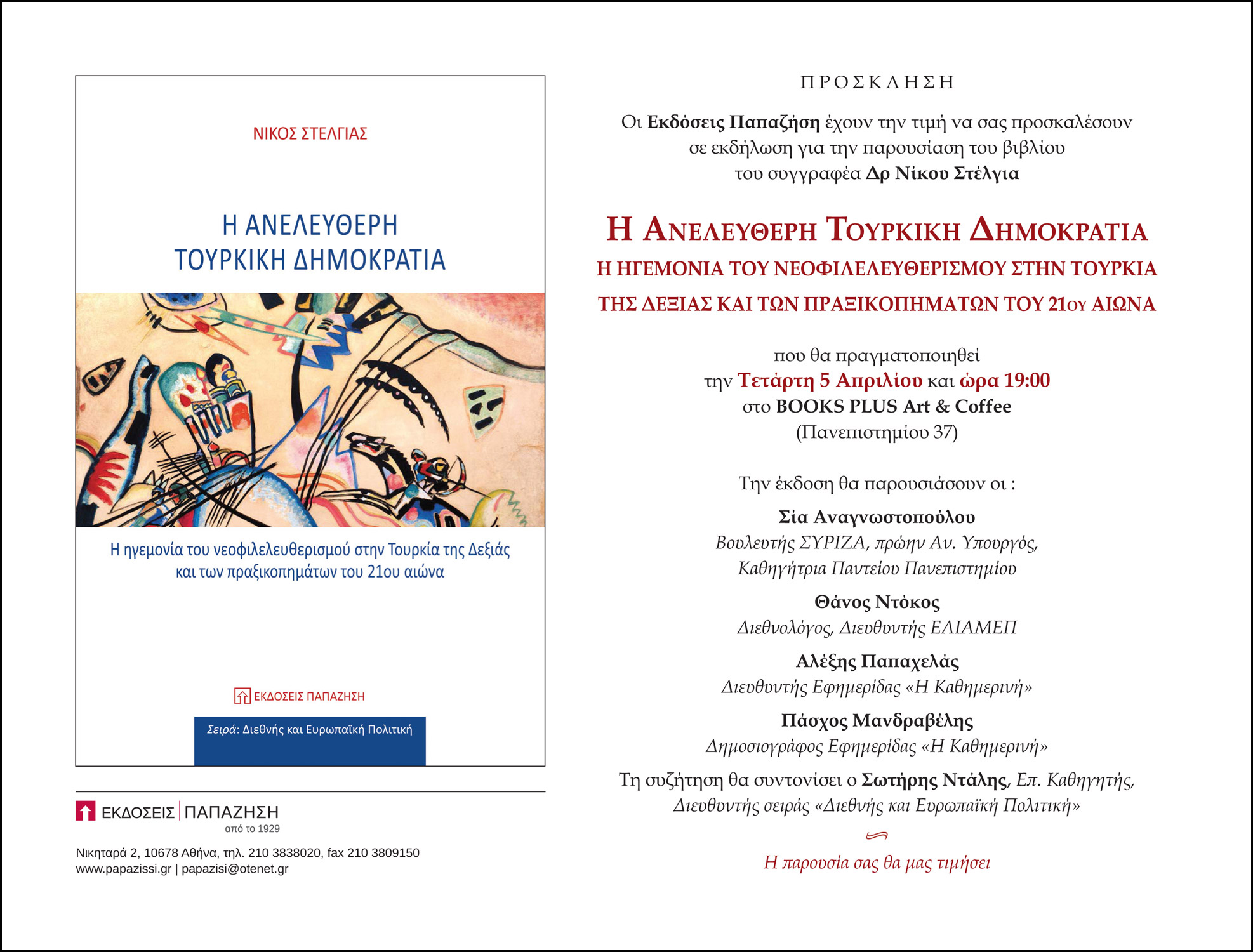 ΝέαΟι Εκδόσεις Παπαζήση έχουν την τιμή να σας προσκαλέσουν σε εκδήλωση για την παρουσίαση του βιβλίου του συγγραφέα Δρ Νίκου Στέλγια