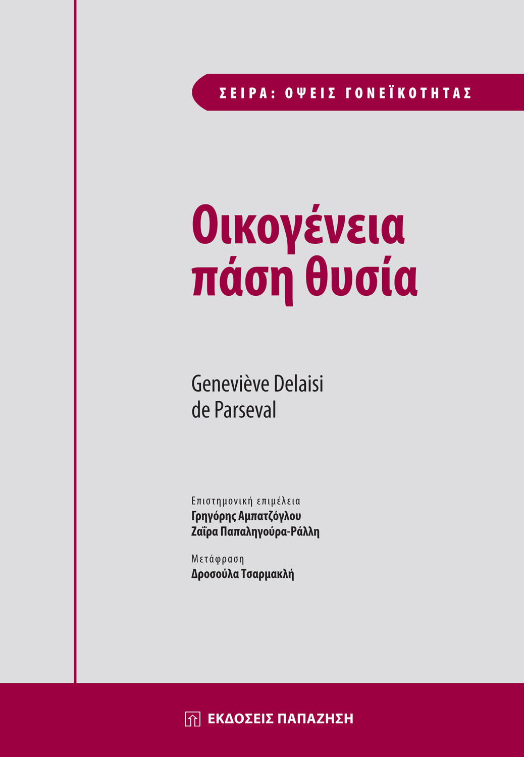 Στο βιβλίο αυτό η Genevieve Delaisi de Parseval διευρύνει τις σκέψεις της γύρω από το ζήτημα της σύγχρονης οικογένειας το οποίο πρωτοέθιξε πριν από εικοσιπέντε χρόνια με το βιβλίο της “L’enfant a tout prix” [Παιδί πάση θυσία]. Με βάση την κλινική της εμπειρία όσον αφορά την ιατρικά υποβοηθούμενη αναπαραγωγή (τεχνητή έγχυση σπέρματος δότη, εξωσωματική γονιμοποίηση, δωρεές γαμετών και εμβρύων…), απευθύνεται κυρίως σε αυτούς τους καινούριους γονείς προκειμένου να τους βοηθήσει να ανακαλύψουν τα σημεία αναφοράς τους σε αυτό το υπερβολικά περίπλοκο πρόβλημα. Τι κάνει κανείς όταν “αυτό” δεν προχωρεί; Πρόκειται για μια εγκυμοσύνη σαν τις άλλες; Πρέπει -και πώς- να μιλήσει κανείς στα παιδιά για τον τρόπο με τον οποίο συνελήφθησαν; Πώς να αναπαραστήσουν τη συμβολή των δοτών γαμετών; Τι να σκεφτούν για την πρακτική της παρένθετης μητρότητας; Και τα αιτήματα των ομοφυλόφιλων ζευγαριών; Συγκρίνοντας τους νόμους που ισχύουν σε διαφορετικές χώρες του κόσμου, η Genevieve Delaisi de Parseval προτείνει στον γάλλο νομοθέτη συγκεκριμένα μέτρα που αποσκοπούν στην ανανέωση της βιοηθικής διαλογικής αντιπαράθεσης. Είναι το βιβλίο που αναμέναμε σχετικά με την οικογενειακή επανάσταση που προήλθε από την ιατρικά υποβοηθούμενη αναπαραγωγή.