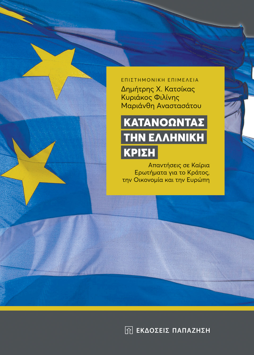 Ο τόμος φιλοδοξεί να συνεισφέρει στη διεξαγωγή ενός περισσότερο νηφάλιου και, κυρίως, τεκμηριωμένου δημόσιου διαλόγου. Αυτός είναι άλλωστε και ο βασικός στόχος του Παρατηρητηρίου για την Κρίση του Ελληνικού Ιδρύματος Ευρωπαϊκής και Εξωτερικής Πολιτικής (ΕΛΙΑΜΕΠ), πρωτοβουλία του οποίου είναι η έκδοση αυτού του συλλογικού τόμου.