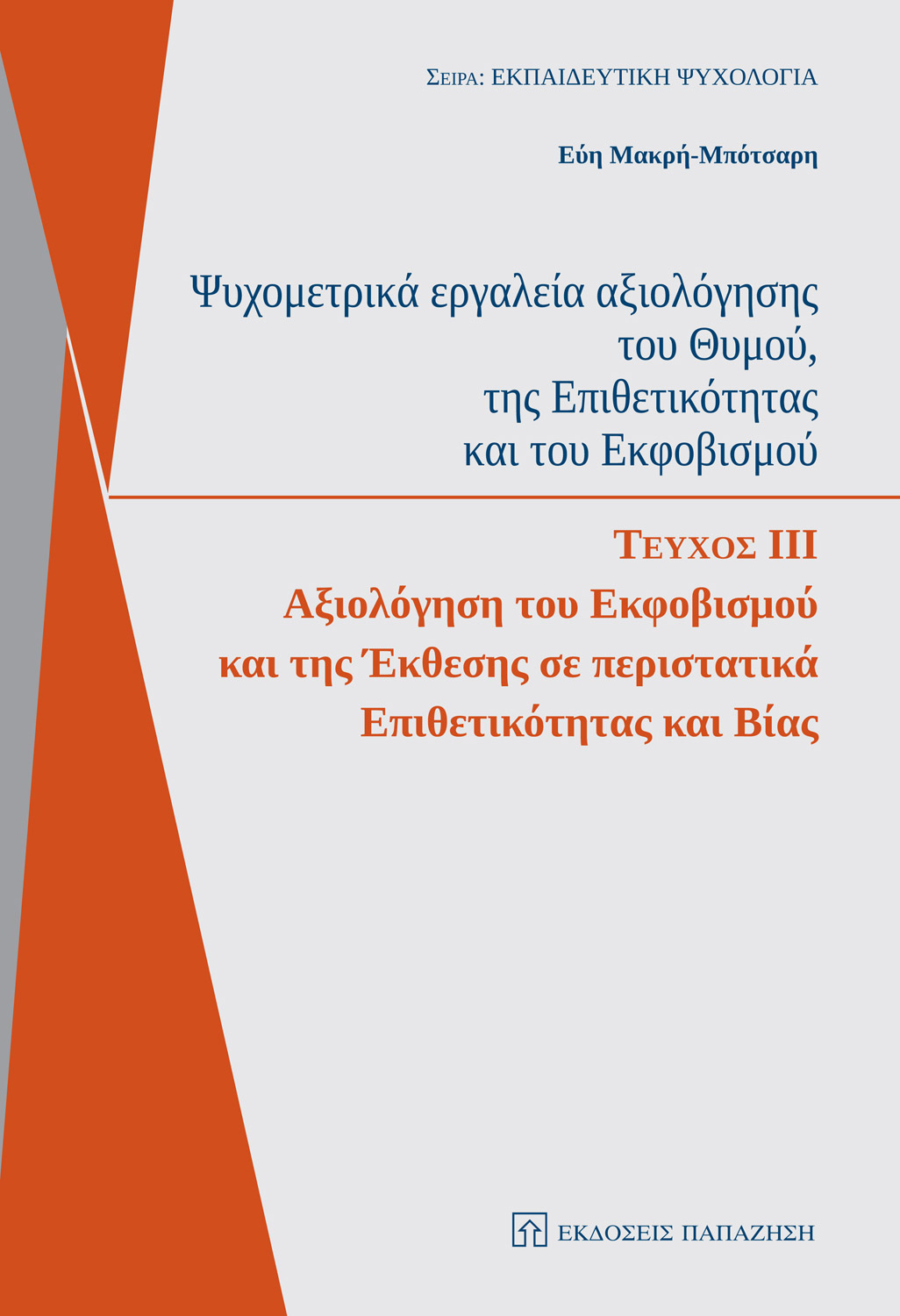 Το τεύχος αυτό περιλαμβάνει τη δομή, τις οδηγίες χρήσης και τους δείκτες αξιοπιστίας και εγκυρότητας δύο ερωτηματολογίων για την αξιολόγηση του εκφοβισμού και της έκθεσης σε περιστατικά επιθετικότητας και βίας. Το παρόν τεύχος συμπληρώνεται με δύο ακόμα τεύχη στα οποία παρουσιάζονται η δομή, οι οδηγίες χρήσης και οι δείκτες αξιοπιστίας και εγκυρότητας ερωτηματολογίων για την αξιολόγηση του θυμού και της επιθετικότητας.